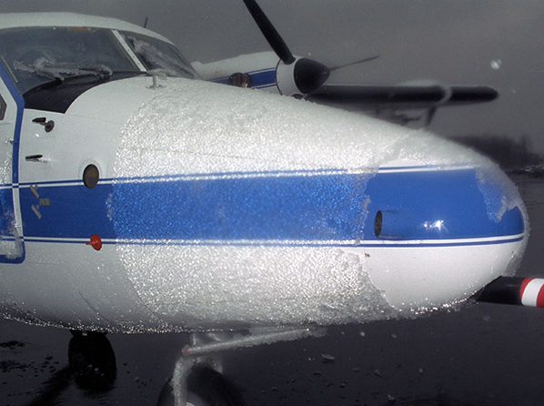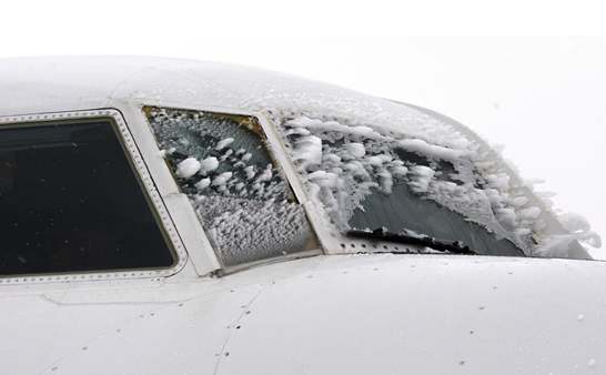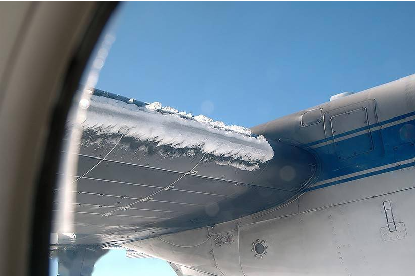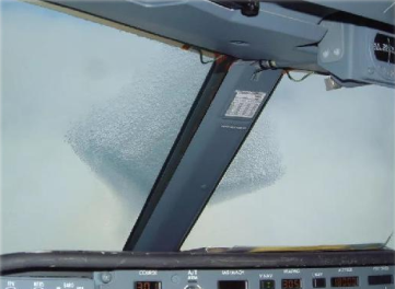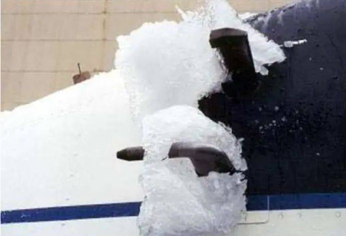 3.影响机上传感器、探头、天线性能和风挡的透明度。在皮托管、静压孔和迎角探头的积冰,会影响静压、动压和迎角的测量值,进而使高度、空速、下降率及各种仪表向飞行员或自动驾驶仪提供错误的数据,直接威胁飞行安全;飞机发动机上的压力传感器积冰也会引起错误的大功率指示,导致机组在起飞时使用的推力比实际需要的推力要小,可能存在事故隐患;天线上积冰可能引起天线折断,干扰无线电通信,严重时可能导致无线电通信失效及雷达信号失灵;风挡积冰会大大降低其透明度,使目视条件大大恶化,严重影响飞行员视线。