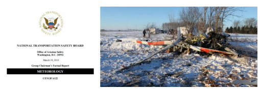 2、案例二:2013年1月2日20:57,隶属于美国某医疗转运公司的Bell407(机号N445MT)坠毁在爱荷华州清湖附近。该直升机于20:49由梅森市摩西医疗中心起飞,目的地为埃梅斯堡帕洛阿尔托悬医院。机上一名驾驶员及两名医护不幸遇难。经NTSB调查,事故原因为旋翼积冰导致的升力不足。