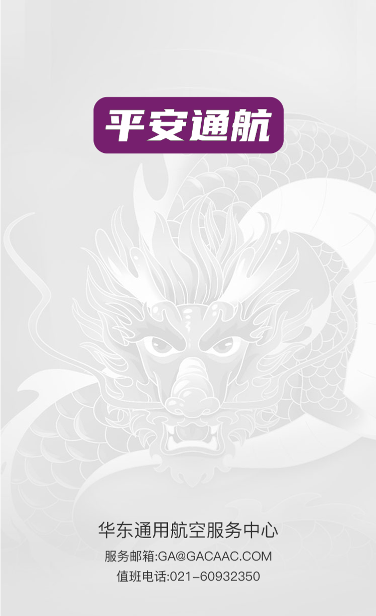 华东通用航空服务中心在局方部署下建设“平安通航”安全服务平台。按照局方“加强关键信息共享,做好事前提醒预防,推动源头防控风险”的要求,为广大通航单位提供专业服务。有关信息正通过“平安通航”网站(www.SafetyGA.com)和“华东通用航空服务中心”微信公众号持续更新发布,其中通航“虚拟AOC”通航运营人联合值班制度已经开始实施。